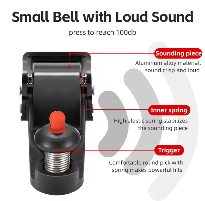 El Timbre ROCKBROS de aleación de aluminio ofrece un sonido claro de hasta 100 dB, perfecto para alertar a peatones, ciclistas y autos. Su construcción en metal resistente y su tamaño compacto lo hacen una opción práctica para cualquier bicicleta.